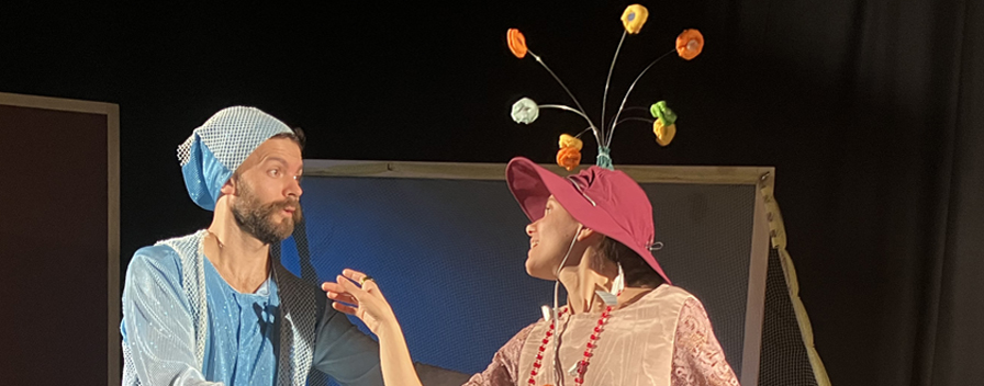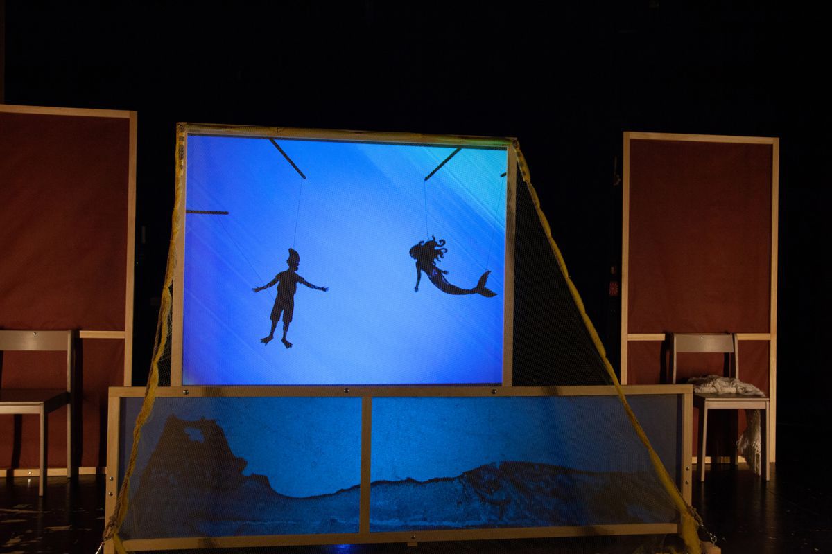 Il testo si basa su una delle più importanti e note leggende del meridione d’Italia, collocabile sullo Stretto di Messina, della quale esistono decine di versioni. Una delle più famose è quella di Italo Calvino, compresa nella sua raccolta “Fiabe Italiane”. La conclusione di alcune di queste narra di Colapesce che rimarrà sul fondo del mare a reggere una delle tre colonne che sorreggono la Sicilia, quella spezzata. In una versione elaborata e cantata da Otello Profazio i marinai ancora oggi sentono la sua voce fra le onde. All’interno del lavoro, caratterizzato dalla presenza di numerosi brani originali cantati dal vivo, sono presenti vari linguaggi: teatro d’attore, di figura, musicale. La scenografia è rappresentata da una rete da pesca e pannelli sui quali sono proiettate immagini in movimento che ricordano i disegni dei bambini.